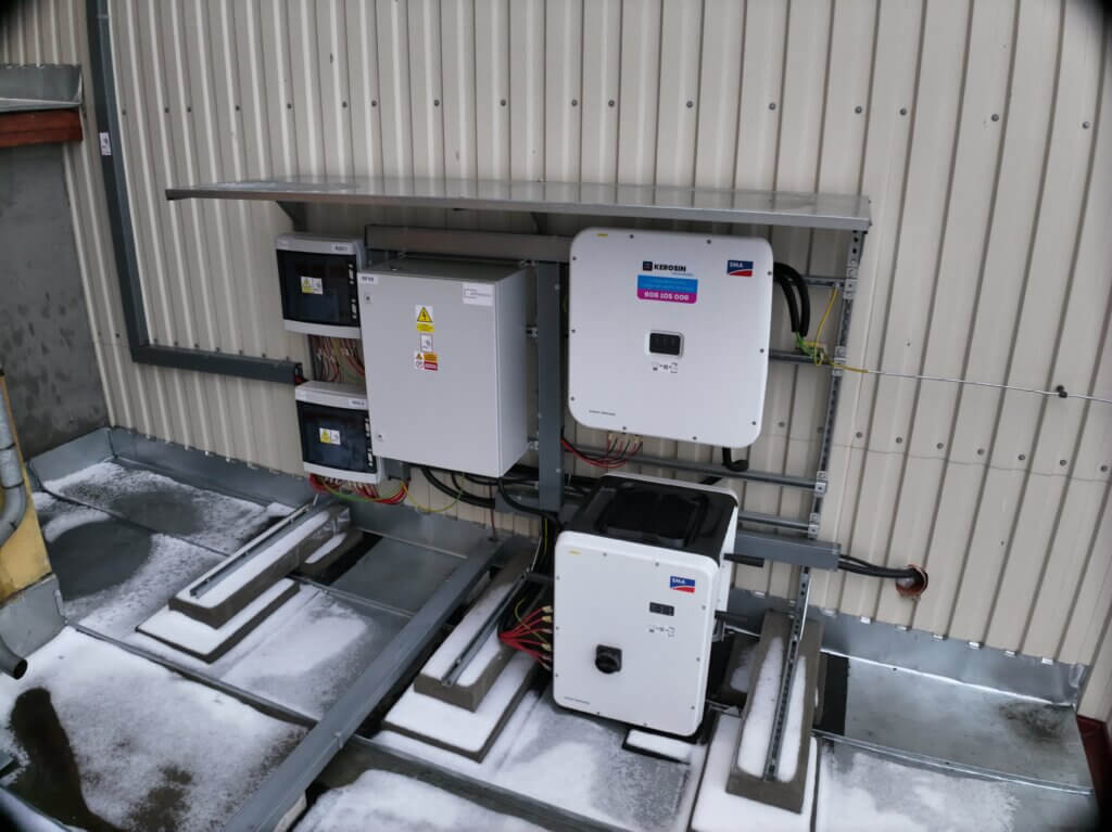 Pro společnost IBK TRADE jsme na střechu objektu instalovali 150 fotovoltaických panelů o celkovém výkonu 80 kWp. Vyrobenou energii zajišťují dva fotovoltaické střídače SMA, které umožňují efektivní provoz a monitoring systému. Instalace přispívá ke snížení nákladů na energie a vyšší energetické soběstačnosti společnosti.