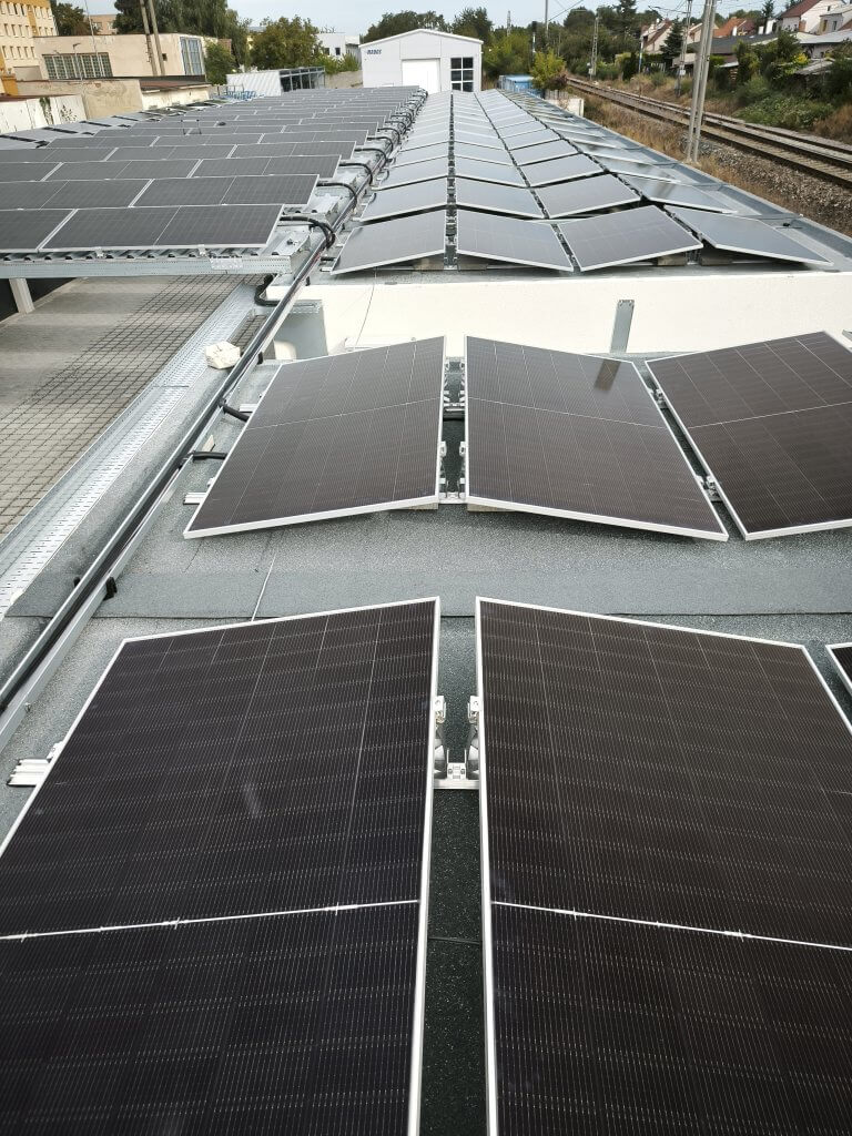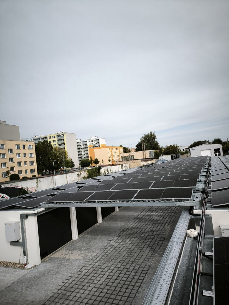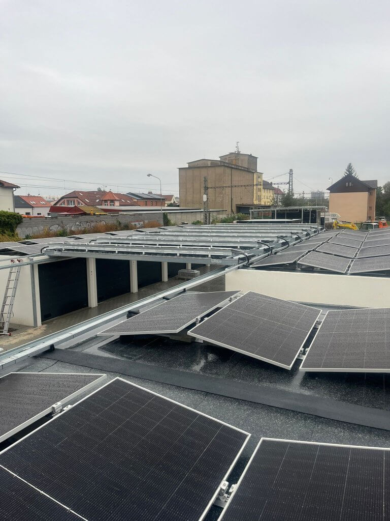 V září jsme nastoupili na realizaci připravovaného projektu osazení fotovoltaiky s bateriovým úložištěm na nově budovaných garážích. Tento projekt je unikátní osazením fotovoltaických panelů i na nosníky mezi dvě řady garáží. Získaná energie bude díky akumulaci efektivně využita pro přilehlou myčku aut a nabíjecí stanice.