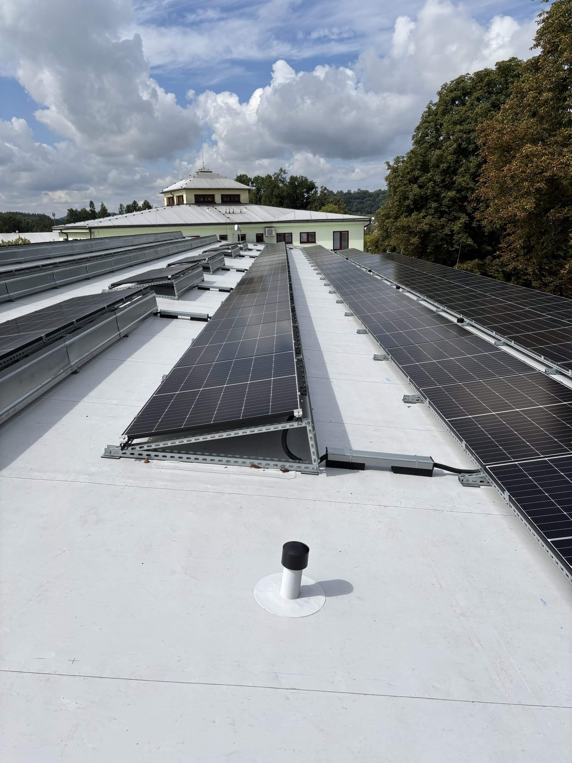 V průběhu léta jsme zahájili další z realizací, tentokrát v Letohradě pro zákazníka REALIT SPEKTRUM s.r.o., pro kterého v současné chvíli dokončujeme FVE o výkonu 61,65 kWp. Zde stojí za zmínku, že se jedná o instalaci na střechu se záporným sklonem na tzv. „lepené konstrukci“.